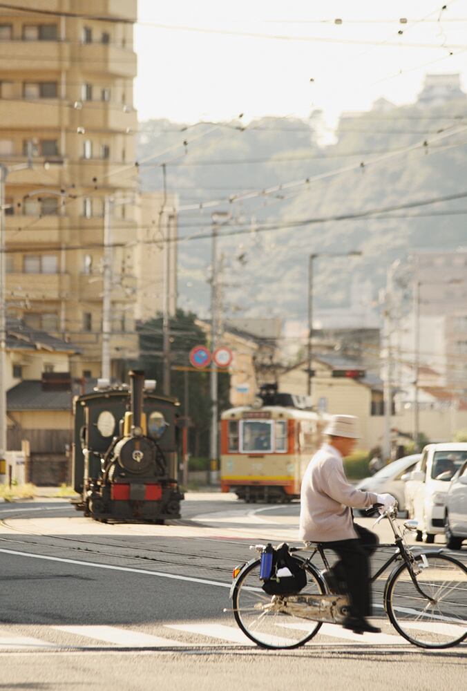 ゆっくりとしたリズムで旅客を運ぶ路面電車と坊っちゃん列車、